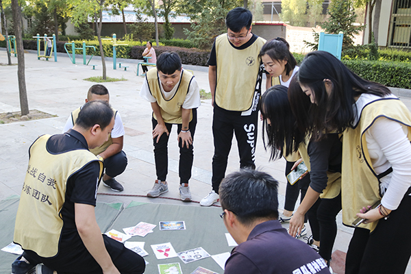 下午在几个热身小游戏之后,我们迎来了最后的环节—“急速60秒”,教练准备好了30张图片,每张图片的内容代表着一个数字,将30张图片围成一个圈,一人站在圈内指认图片,其余队员在圈外帮助辨认图片内容,要求在60秒内按数字顺序指出图片。图片内容极其抽象,需要大家集思广益,每个小组都各自为了自己小组的成绩而努力着,却没有想过我们其实可以信息共享、互相合作,最终以失败告终。其实在工作当中,我们也常常这样,只看重自己的胜负,如果我们能够多一些协作,多一份信任,一定会实现双方的合作共赢。