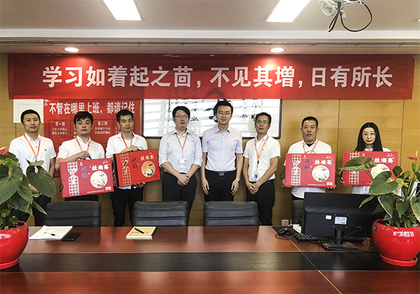交谈结束后,平安普惠领导为我们的优秀员工也送上了中秋礼品及祝福,并合影留念。