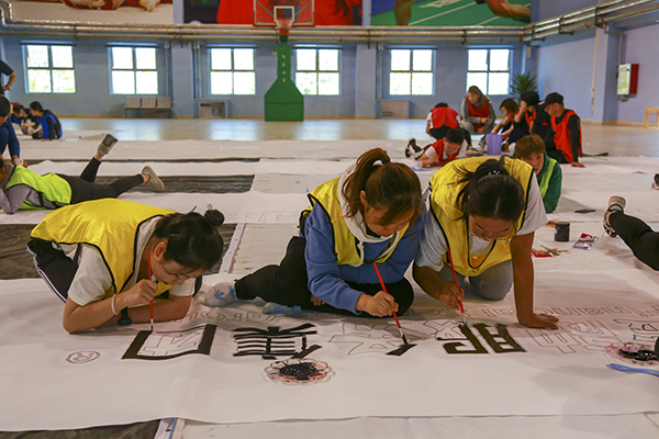 9月24日上午,教官带领全体人员学习了纳斯卡巨画的由来,并安排四位队长抽签决定描绘的图案,一幅60平方米的纳斯卡巨画。被平均分成四个版块,由四个团队协力完成。四位组长带领自己的团队进行绘制前的准备工作,并对物料、调色、上色、外联等事务进行明确到人,每个人员分工明确。