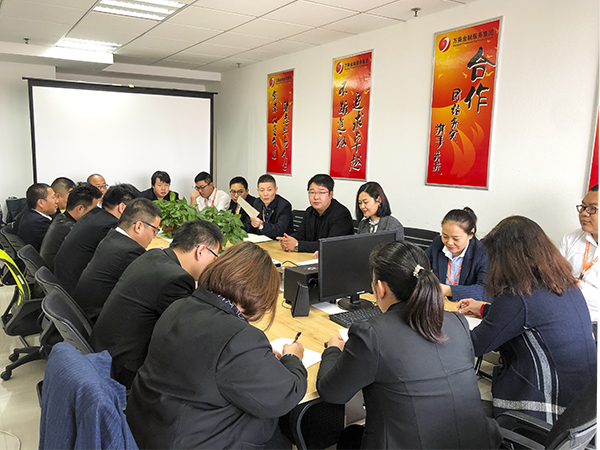 2019年10月18日上午8点30分,深圳万乘联合投资有限公司陕西分公司召开第三季度业务总结暨风险管控会议,负责人张总组织主持,公司中层及骨干人员参加。