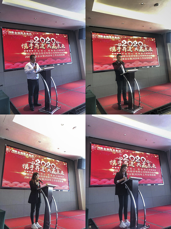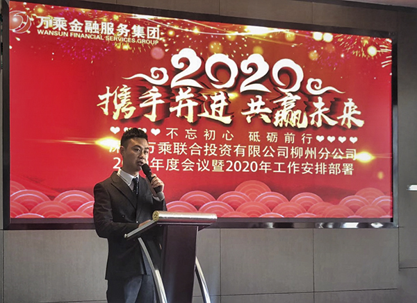会议首先听取了各部门2019年度的工作汇报,柳州万乘副总经理王丁丁代表柳州分公司做了公司年度工作总结报告,并对2020年工作进行了部署。