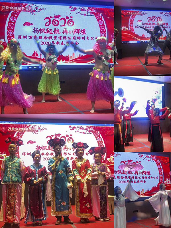随后、柳州分公司员工开始了自创自演丰富多彩的文艺节目,一曲(野狼迪斯科)劲爆声响下给大家带来了一个精彩的开头,小品,歌曲,舞蹈,接踵而至,节目过程中穿插的抽奖活动更是让整个晚会高潮迭起,甲方领导,广西万乘兼柳州万乘总经理谭运鹏,副总经理王丁丁,以及各部门管理人员,一一给获奖员工颁发了奖品。新年晚宴上全体员工为新的一年举杯同庆,共同祝愿柳州万乘的明天会更好。