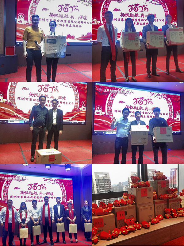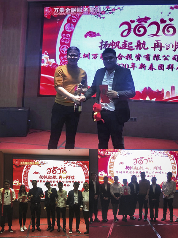 会后,让人激情兴奋的迎新年会正式拉开帷幕,本次年会还邀请了民生银行战略合作伙伴、殷总、郝总的共同参加,同时也对我司民生团队颁发了锦旗,至此柳州万乘将不负众望,继续以优异的成绩回报我司战略合作伙伴。