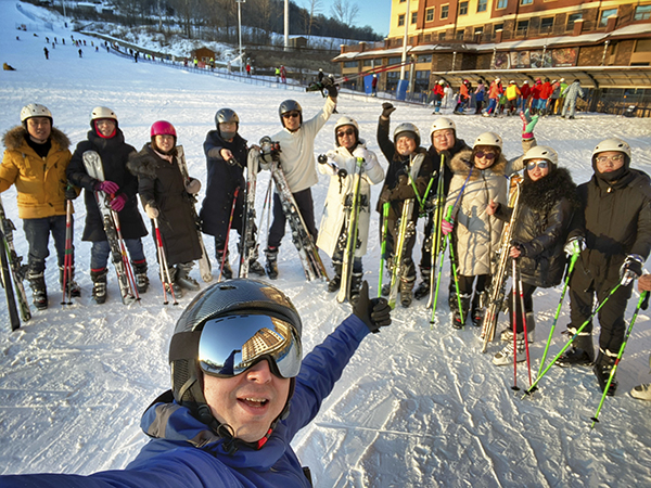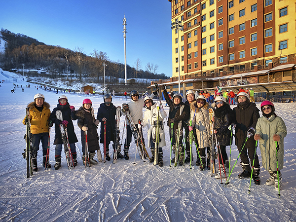 经过7小时左右的车程,于下午两点左右到达长白山万达智选假日酒店。大家稍作调整后,直接从酒店出发集合来到港湾雪场。