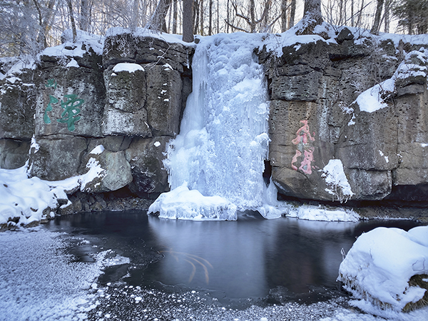绿渊潭和长白山瀑布相比,是一个较迷你的瀑布,最高落差26米,有“东北小九寨沟”之称。冬季的绿渊潭已被冰雪覆盖,宛如一块大玉盘。瀑布水形成自然的冰瀑和冰柱,洞口冰凌垂挂,加上绿色的潭水,不敢想象的清澈。