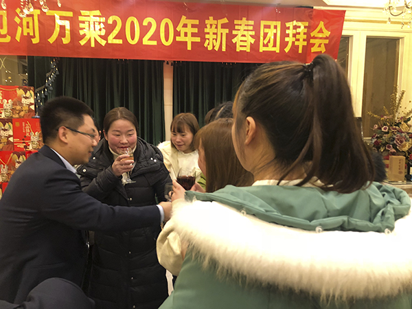 张磊总表示包河万乘发展势头稳定,2020年我们会增加新项目,扩大团队规模,但要戒骄戒躁,公司领导班子要善于学习,善于总结,善于提高,只有不断的加强自我素养和专业水准才能更好的稳操胜券,持续保持优异战绩。孙宇总也依次对对在座所有员工2019年的努力和付出表达了肯定!各位领导对2020年包河万乘寄予厚望!宴会上全体员工为新的一年举杯同庆,共同祝愿包河万乘的明天会更好送出祝福!