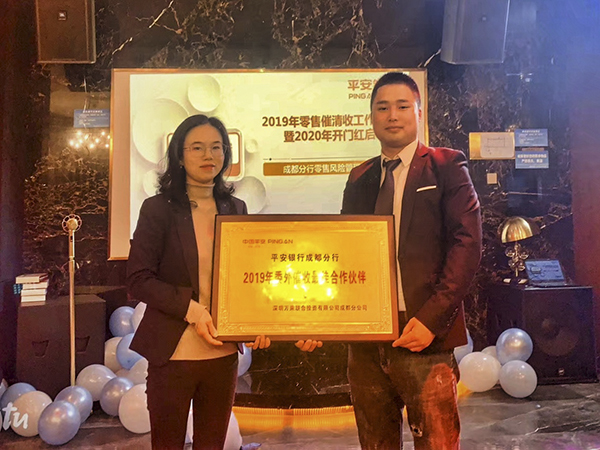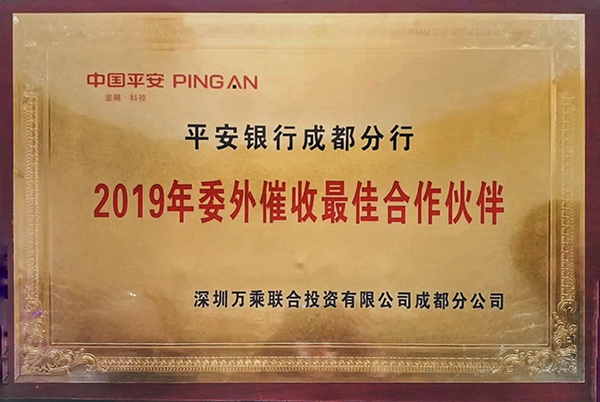 2020年1月17日,平安银行成都分行召开2019年零售信贷催清收总结暨2020年开门红启动会议,成都万乘以2019年全年综合业绩排名第一的成绩荣获平安银行成都分行颁发的2019年度“委外催收最佳合作伙伴”奖项。