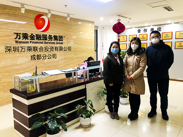胡总首先带客人参观了公司职场,并详细介绍了疫情期间我司的相关制度规范及作业流程,双方就当前合作的业务展开了深入讨论,尤其是疫情期间的工作安排与作业思路。颜总对我司操作规范及风险把控,注重员工的生命与健康安全,特殊时期防疫、生产两不误,努力保持业绩稳定,全力以赴为甲方压降不良的各项工作予以充分肯定,并对成都万乘的全体员工表示慰问与感谢。