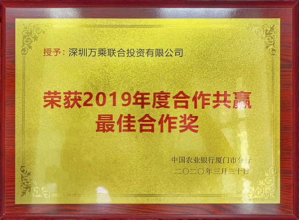 在2020年4月29日上午召开的中国农业银行厦门市分行2019年年度委外催收工作表彰会议上,厦门万乘荣获农行厦门市分行颁发的“2019年度合作共赢、最佳合作奖”奖项。