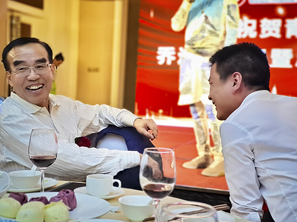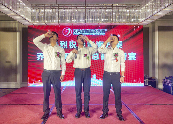 新职场揭牌仪式后,韩总裁在五星酒店新华联索菲特大酒店筵开7席,为青海分公司举办万乘集团的最高仪式一一"总裁荣誉宴"。全体员工及各位嘉宾欢聚一堂,欢歌笑语,频频举杯,共同祝贺青海公司取得的优异业绩,共同祝愿万乘的明天更美好。