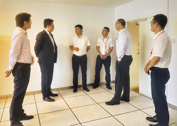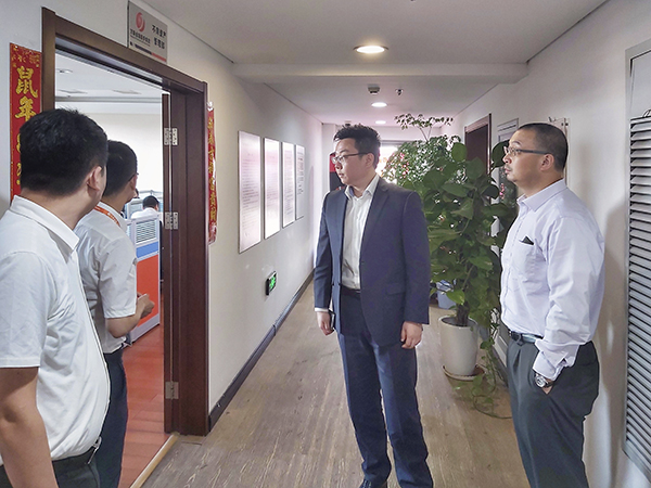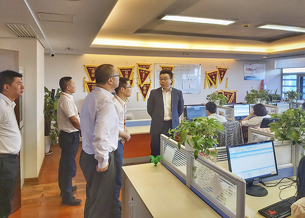 在李总带领下,来访的三位领导参观了天津万乘的办公职场,在作业团队工位前驻足聆听,仔细询问了解作业流程中的细节。