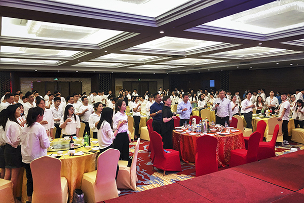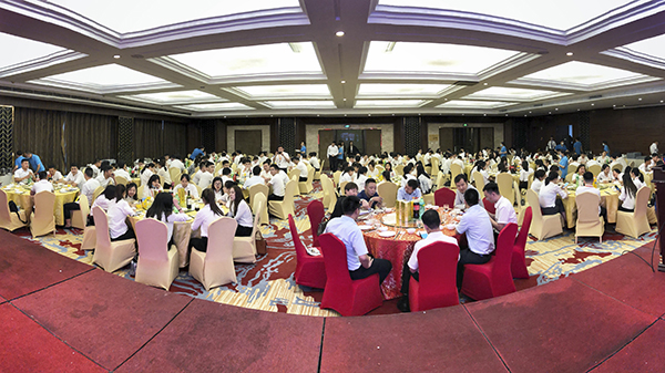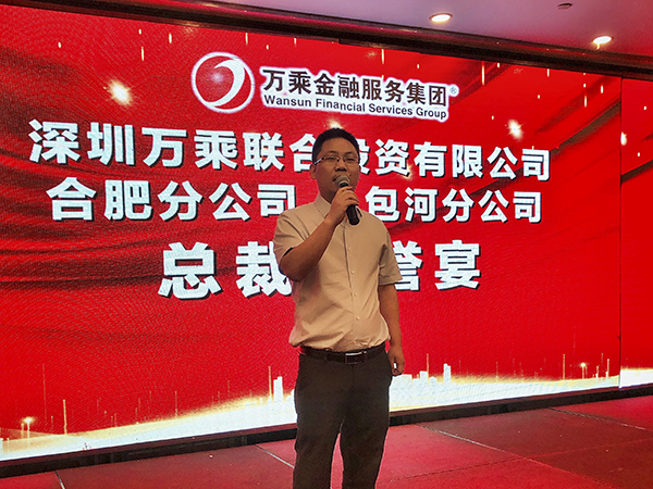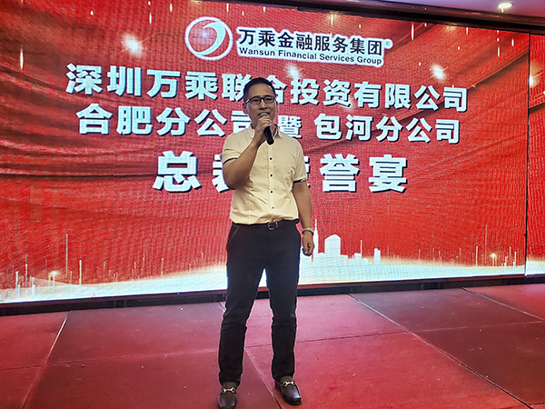 晚上6时许,夜幕降临,华灯初上。位于合肥滨湖新区的安徽金陵大饭店流光溢彩,金碧辉煌。韩总裁筵开20席,为两家分公司庆功。两大军团会师于这家五星酒店,握手、问候、拥抱,欢声笑语,融融亲情,共享荣耀时刻!面对200多名队容整齐、朝气蓬勃的青春之师,韩总裁发表了热情洋溢的演讲。韩总裁指出,合肥万乘作为万乘集团在泛长三角的一支劲旅,近半年来业绩迭创新高,已有3个月佣金收入突破200万元,4月份更是创出260多万元的历史新高,可喜可贺!包河分公司作为从事呼叫外包业务的机构,在整个行业收益率偏低的情况下,这个以95后为主打的年轻团队,初生牛犊不畏虎,敢打敢拚,在4月份创出110万元的佣金收入,成为万乘集团“百万俱乐部”的第27个成员,可谓青春无敌!韩总裁亲切勉励两个分公司的全体将士,继续发扬万乘的狼性精神,不懈怠,不松劲,拧成一股绳,冲击新的业绩高峰,为万乘基业长青作出贡献!