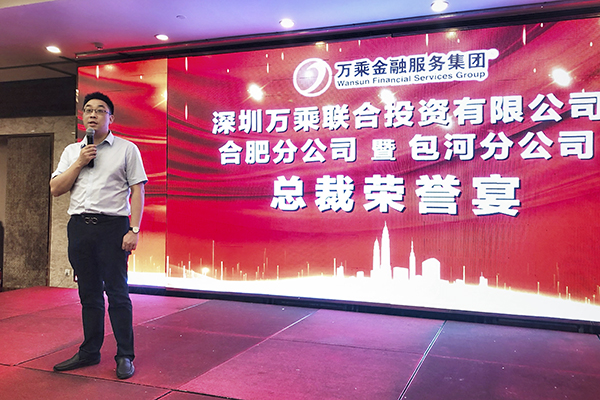 5月25日下午,专程赶赴合肥的万乘金融服务集团创始人/CEO/总裁韩晓先生先后莅临位于合肥市包河区的合肥分公司职场和位于合肥市滨湖新区的包河分公司职场,亲自看望和慰问战斗第一线的全体员工。