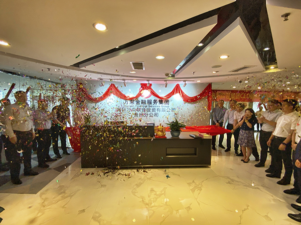 在飘舞的礼花中,在110名员工潮水般的掌声中,韩总与贵州万乘总经理助理王新峰,以及中信银行、交通银行、民生银行的领导一起为贵州分公司新职场揭牌。