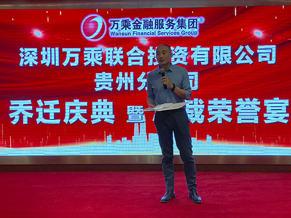 贵州万乘总经理助理王新峰主持了新职场乔迁揭牌仪式及“总裁荣誉宴”。