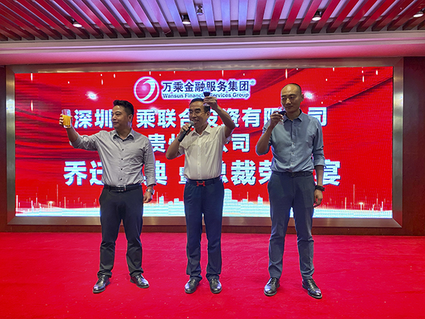 随后,韩晓总裁、董事会秘书刘润东以及王新峰总联袂登台,向全体员工及各位嘉宾敬酒。大家共同举杯,祝贵州分公司乔迁大吉,财源滚滚,业绩长虹。