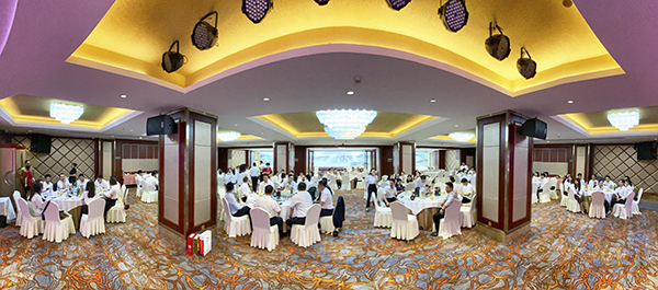 上午12时30分,全体人员移师四星酒店——贵阳华联大酒店大宴会厅,韩总裁筵开12席,为贵州万乘举办“总裁荣誉宴”,并发表了热情洋溢的演讲。韩总裁指出,自去年第四季度以来,贵州万乘的发展进入快车道。今年第一季度虽然受到疫情的较大影响,但在公司复工复产后,全体员工在公司总经理室的正确领导下,克服种种困难,取得了防疫和业绩双丰收。4月份和5月份连续两个月佣金收入突破百万,4月份更是创出158万元佣金收入的历史新高,可喜可贺。韩总裁勉励大家,继续发扬云贵高原战狼的拼搏精神,不骄不躁,向着更强的团队、更好的业绩、更大的市场份额奋勇前进!