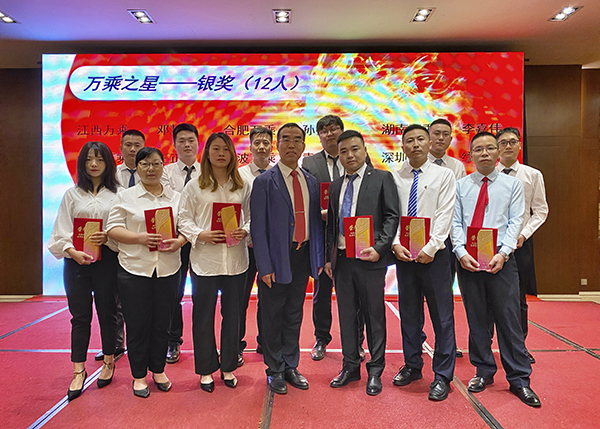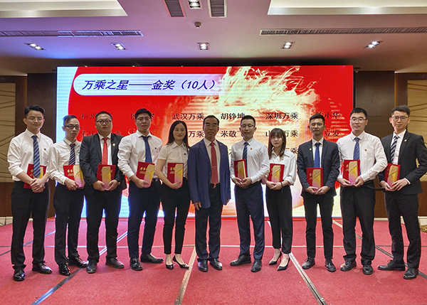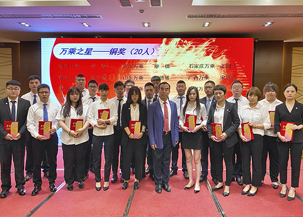 随着歌声的结束,2019年度万乘之星颁奖典礼正式拉开帷幕。由集团创始人/CEO/总裁韩晓担任颁奖嘉宾,荣获万乘希望之星、万乘之星铜奖、银奖和金奖的获奖者依次上台,接受韩总为其颁发奖杯及证书,并合影留念。