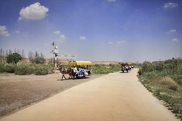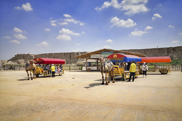 上岸后,我们乘坐驴车、驼车,一路伴随粗犷豪放的秦腔,进入中国唯一保存最完整的古长城立体防御体系,其中一种独特的结构复杂的地洞,名曰”藏兵洞”,为明代战时藏兵之所,其洞道蜿蜒曲折于悬壁之中,上下相通,沿着狭小的洞道,可以感受到里面机关重重,战时的硝烟顿时映入脑海。其中红山宝翁城为古代防城设施中重要的防御设施,“”瓮”实为将敌军瓮中捉鳖,关门打狗之意,可想象结构的奇妙及战时的残酷…………“秦时明月汉时关,万里长征人未还,但使龙城飞将在,不教胡马渡阴山”,何等的气吞山河!