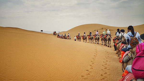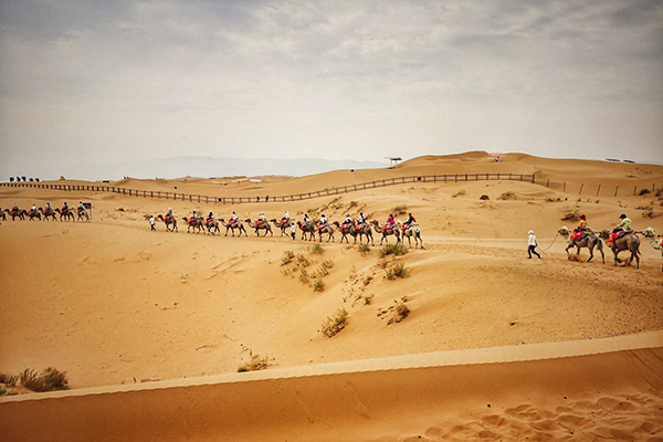 沙坡头分北沙漠区和南黄河区,我们带着一颗向往神秘沙漠的心,乘坐摆渡车,向目的地进军!进入沙漠腹地,首先体验乘驼项目,骑上神圣的沙漠之舟——骆驼,绕着沙漠山脊瑀瑀行走,犹如进入一个古老而广袤的万里黄沙秘境……不禁感慨大自然的广博无垠以及鬼斧神工!同时不由感慨人类的渺小。大漠之旅一路惊喜不断,风光无限。而后体验冲浪车项目更是让人惊出一身冷汗……这种跌宕起伏、惊险刺激的沙漠之路冲浪体验,正如我们人生之路,不经意间的一个下陡坡,一个小曲折或一个拐弯,稳住了就顺畅了,也可能就赢了。
