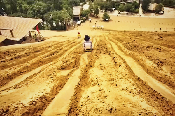 沙漠热情未褪,随后我们到达黄河区,这里有享誉中外的国际滑沙中心—沙坡鸣钟滑沙场,我们也在这坡长落差高的天然滑沙场体验了一回,人乘流沙,如从天降,无染尘之忧,有鸣钟之乐,其乐无穷。