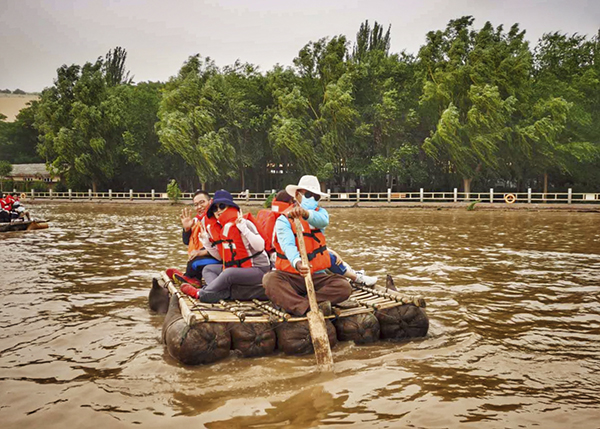 相信每个人都有一个飞越黄河的梦,那么来体验飞索项目吧,沙坡头跨河飞索是横跨黄河的第一条高空飞索,故又称“天下黄河第一索”!脚下涛涛黄河水,即使想飞越,也需要瞬间冲向汹涌黄河的勇气,冲过去了,离“飞黄腾达”的梦想就不远了……夹杂着梦想、刺激与心跳,我们豁出去了!在飞越黄河后,紧接着我们乘坐羊皮筏,来到”黄河第一漂”,与浊浪滚滚的黄河来个亲密接触………惊魂未定,又乘坐电瓶车到达3D玻璃栈道,俯瞰黄河水,身临其境感受“黄河之水天上来,奔流到海不复回”的宏伟气势。
