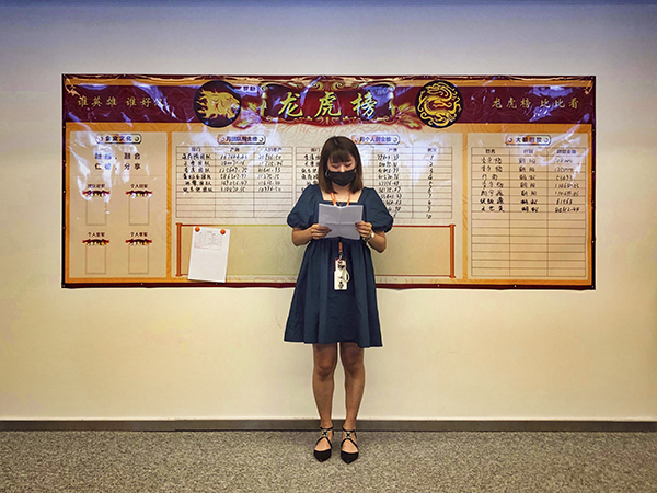 接下来,由我来跟大家做一个工作经验的分享。我是2015年入职万乘的大家庭,目前负责做华夏银行4手信用卡业务,历经两年时间我们从开始的4位小伙伴发展到现在的14位,这期间我们经历了非常多的困难和考验,在此,要再一次感谢刘总,李总,客服部,行政部,财务部以及辽宁万乘全体同仁对于我们工作上的支持,鼓励。回顾过去的一年,华夏团队6个人全年创佣180万,这不是我的终极目标。通过这次万乘之星的学习,让我更加坚定了把团队做好,做强的信念。最重要的是,在我们的精神领袖韩总的带领下,我们更加坚定了我们的信心。做为万乘人,我非常骄傲。