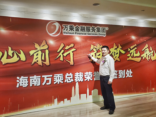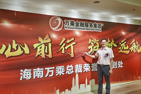 7月11日下午,海口碧空丽日,椰风海韵。风尘仆仆远道而来的万乘金融服务集团创始人/CEO/总裁韩晓先生来到海口市国贸路城市精英大厦5层海南万乘办公职场,亲切看望和慰问工作在第一线的海南分公司全体员工。