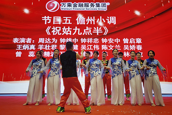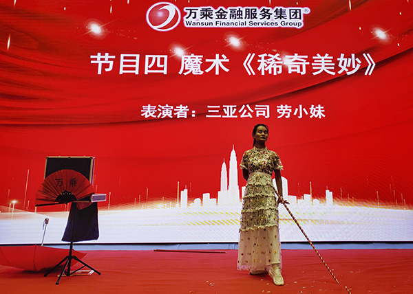 随后,在主持人的引导下,海南分公司的帅哥美女们表演了歌舞、魔术、吉他弹奏、儋州小调等精彩节目为宴会助兴。