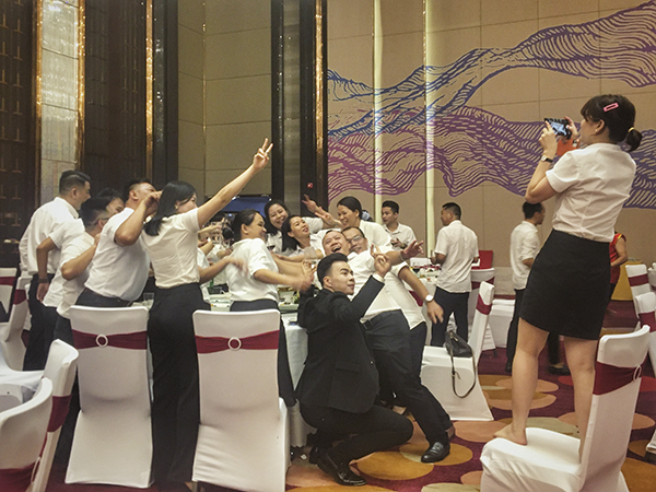 晚上7时许,落霞余晖,海风徐来,紧张工作了一天的144名海南万乘员工和6名三亚万乘优秀员工代表欢歌笑语,喜气洋洋,汇聚在海口滨海路的五星酒店——海口希尔顿大酒店,参加集团"总裁荣誉宴",共享荣耀时刻。面对着150多张青春的脸庞,韩总裁发表了热情洋溢的讲话。韩总裁指出,自去年下半年以来,海南万乘的发展进入快车道。尤其是今年2月份复工复产以后,克服疫情带来的种种不利因素,迎难而上,逆风飞扬,业绩迭创新高。3-6月份,佣金收入连续4个月突破百万,5月份和6月份更是创出近160万元的历史新高,谱写了一曲荡气回肠的青春之歌,集团总裁室为海南分公司点赞!韩总裁亲切勉励大家,发扬连续作战的精神,凝神聚力,不懈怠,不松劲,下半年全力冲击200万月度佣金收入的新目标,大功告成之日,他将再次来海南,为海南万乘全体将士再次举办“总裁荣誉宴”。