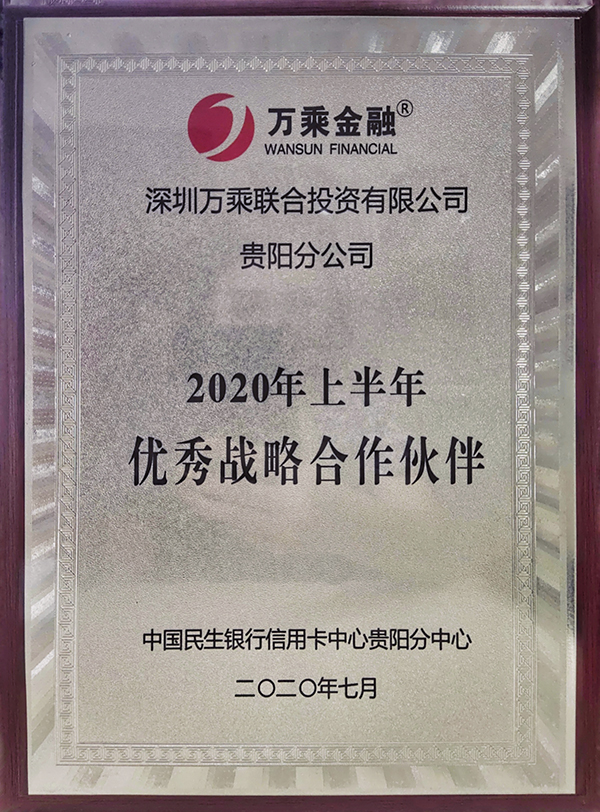 七月的盛夏,炙热的阳光展示着万乘的魅力。贵州万乘荣获中国民生银行信用卡中心贵阳分中心颁发的2020年上半年“优秀战略合作伙伴”奖项。