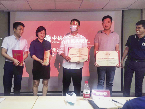 汕头万乘总经理董志伟和不良资产管理部副主任罗灿荣参加了中信银行信用卡中心广州分中心颁奖会议,并分别从中信银行信用卡中心广州分中心领导手中领取了2020年二季度广州异地普案业务“天玑奖”牌匾和2020年二季度广州地区中信普案业务“优秀主管”荣誉证书。