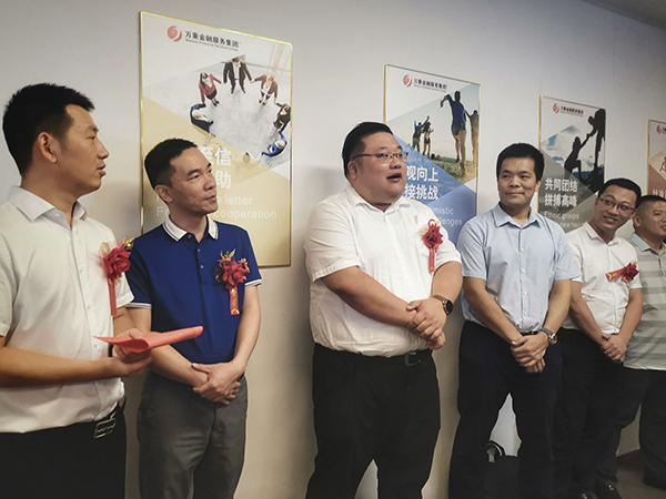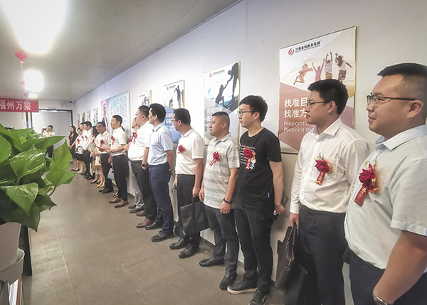 万乘金融服务集团创始人/CEO/总裁韩晓先生专程赴福州为公司乔迁新职场揭牌,并发表了热情洋溢的讲话。韩总裁指出,这是福州公司搬迁的第三个职场,也是最高档的一个职场。职场越搬越大,团队越来越壮大,合作伙伴越来越多,业绩不断创出新高,证明了福州团队的战斗力和机构的发展潜力。韩总裁冀望福州公司全体小伙伴,新的职场,新的起点,新的业绩。抓住当前业务量增长较快的有利时机,增员增效,努力拚搏,下半年再创业绩新高。