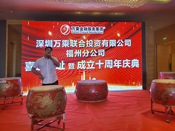中午12时许,福州公司成立10周年庆典在五星大酒店——福州富力威斯汀大酒店拉开帷幕。70多名福州万乘小伙伴喜气洋洋,欢聚一堂,共同为公司庆生。韩总裁、杨帅副总裁、李晓川总共同走上舞台敬酒,祝福州公司乔迁大吉,祝福州公司10岁生日快乐,祝福州公司财源滚滚,业绩长虹!