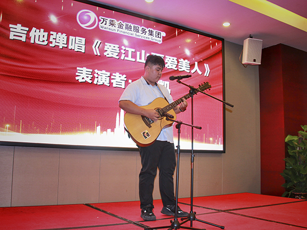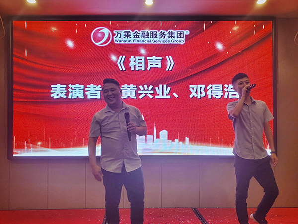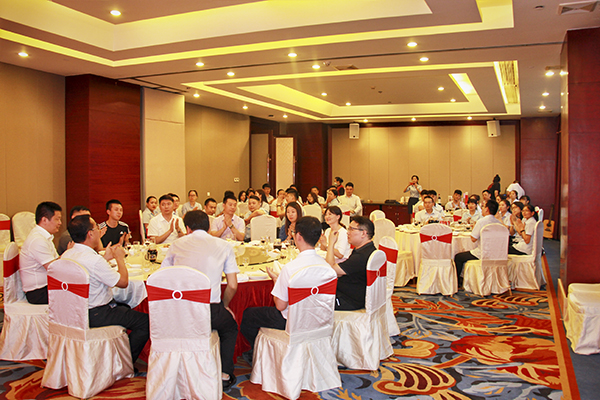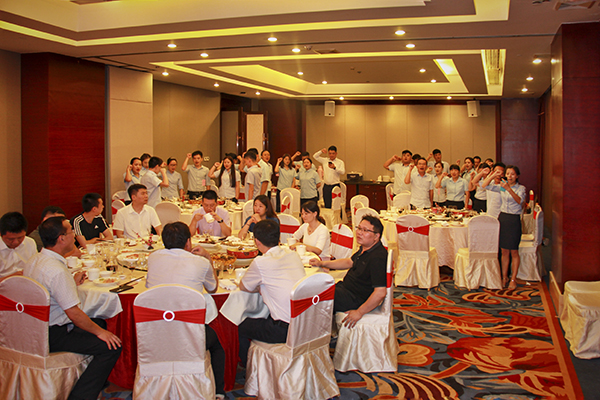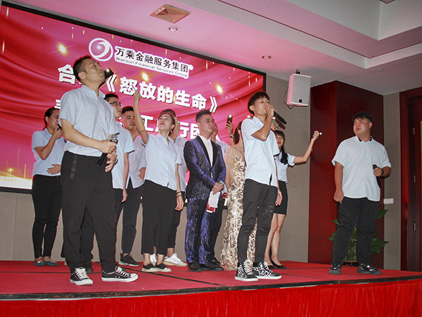 表彰大会结束后,庆功宴拉开大幕。宾主共同举杯,祝三明万乘财源滚滚,业绩长虹。公司员工还表演了歌舞、相声、魔术、吉他弹奏等精彩节目为晚宴助兴。韩总裁还为7名七月份生日的员工举办了庆生仪式。