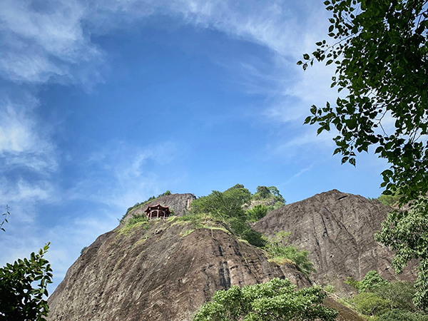 我们朝着顶峰进发,一个劲地向上爬,一步接着一步向上登,终于来到了顶峰,此时我们已忘记了疲劳,武夷山水尽收眼底,令人心胸开阔,陶然忘归。