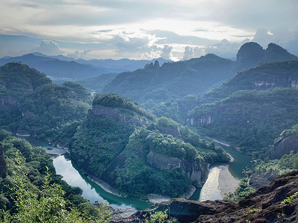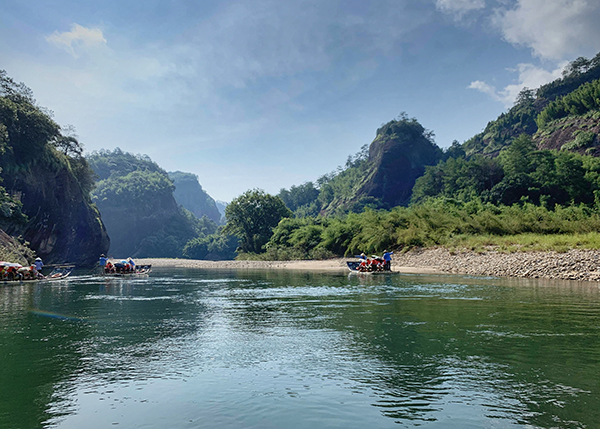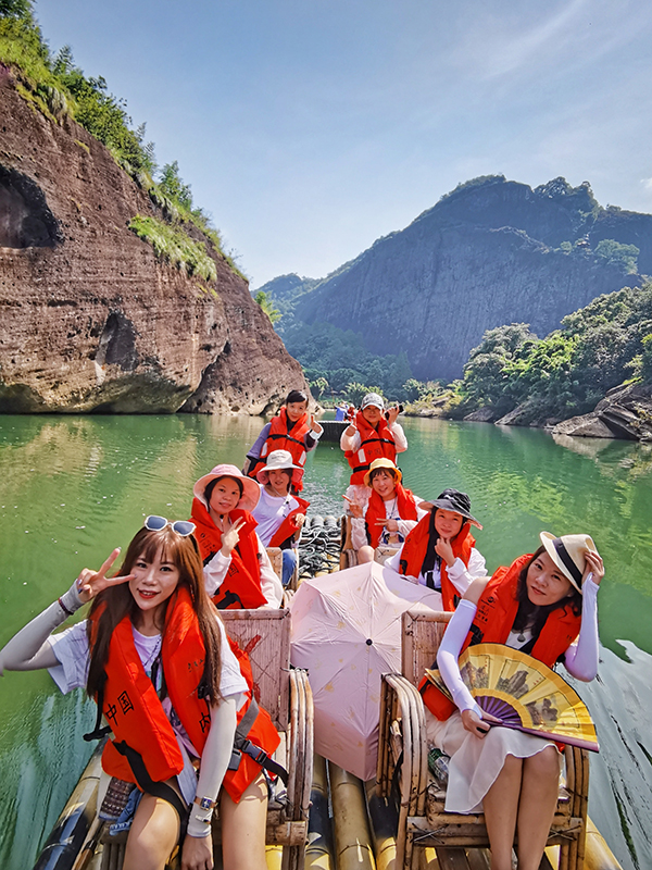 武夷山的灵性在于水。众多的清泉、山涧和溪流,水流虫鸣,如诉如歌。给武夷山注入了灵动与生机。当我们还回梦天游山水、沉浸在如梦如幻的印象大红袍歌舞剧时,转眼到了第二天早上。开始行程第三项,游九曲溪。