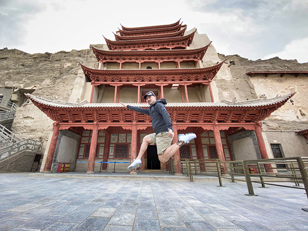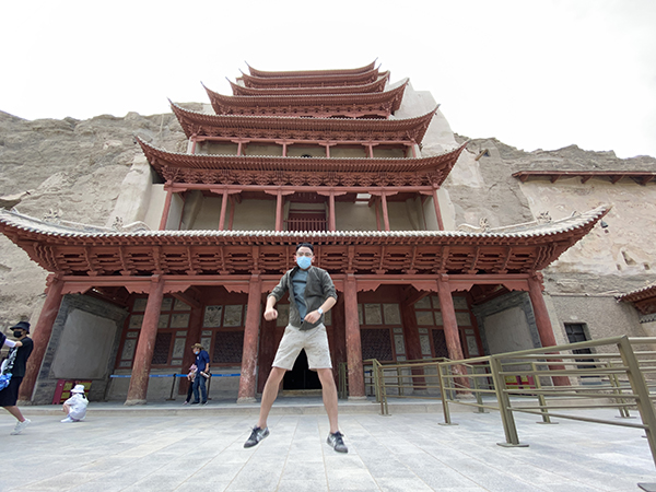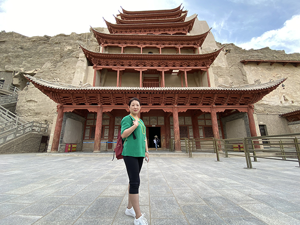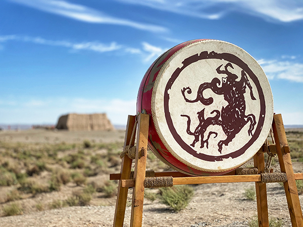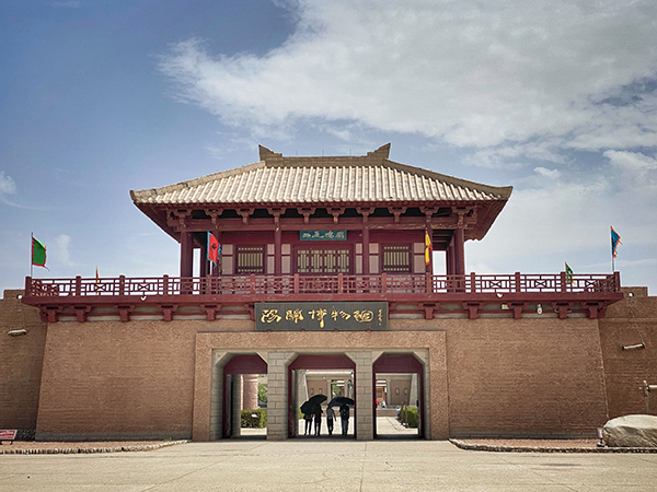 休息调整后,大家亲自体验了阳关内外的凡此种种。首先到达阳关博物馆,跟随讲解员的步伐认真聆听。面前的每一件实物,每一张画面,犹如一本生动的历史教材,在我们面前展现了敦煌、阳关悠久的历史文化。领取通关文牒后,眼前的塞外大漠已然惊艳到了大家的眼球,风沙盖不住敦煌的辉煌历史。汉代的烽燧伫立在关门之外,同天同日不同人。闭眼听风,仿佛就能看到两千多年前旌旗猎猎,马蹄渐远的场景。