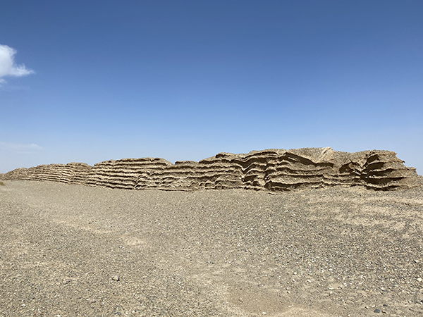 随后我们来到大方盘城遗址。大方盘城又名河仓城,位于小方盘城北约10公里处。河仓城是古代中国西北长城边防至今存留下来古老的、规模较大的、罕见的军需仓库。