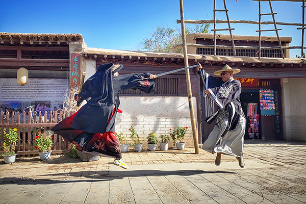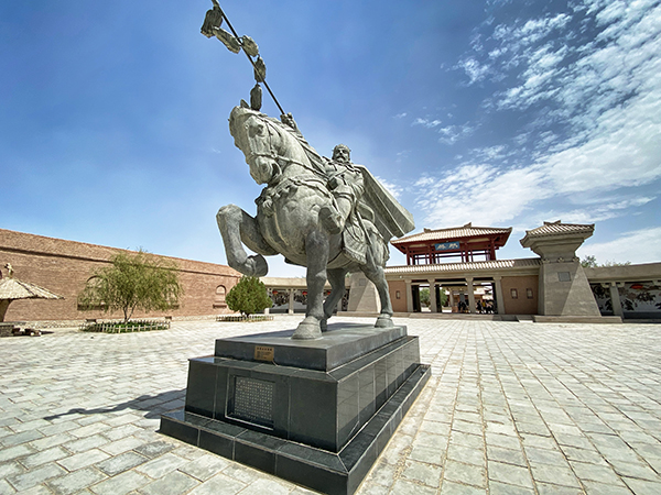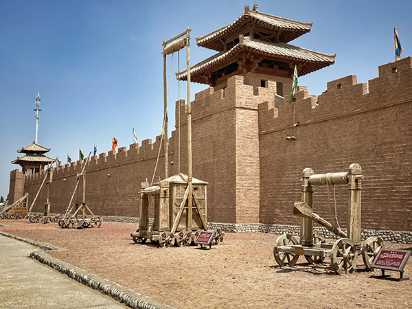 敦煌古城融千年西域民俗于一体,城开东、西、南三门,城楼高耸;城内由北宋时期的高昌、敦煌、甘州、兴庆和汴梁五条主要街道组成,点缀以不同地域的过街楼佛庙、当铺货栈、丝绸店、酒肆饭馆、民居住宅,互为背景相辅相成,再现了唐宋时期西北重镇敦煌的雄姿。