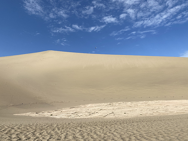 下骆驼后,行走不远,便看到茫茫沙漠中璀璨的明珠,月牙泉呈现在大家眼前,的确让人惊叹不已!大家纷纷向月牙泉涌去。