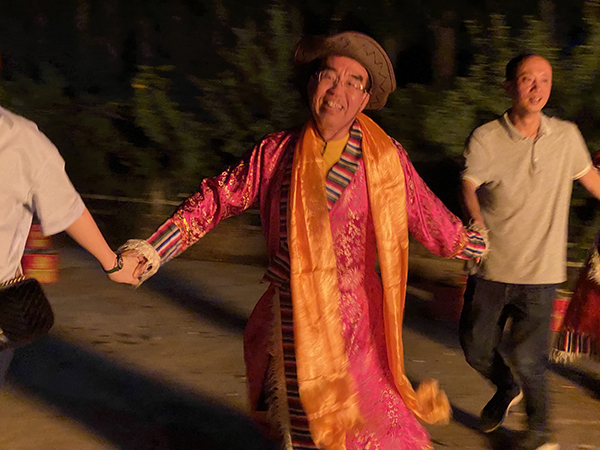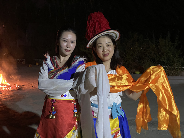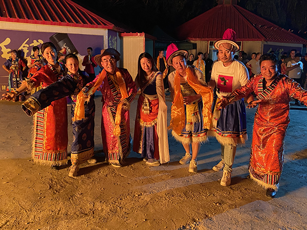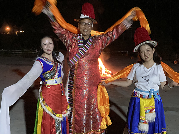 但今晚晚餐,给大家不一样的体验,在有着蒙古包的农家乐里,吃着烤全羊,晚上再点燃篝火,红红的火焰,呼呼的直往上窜。在当地少数民族朋友带领下,一群高管们在篝火周围,手拉着手,载歌载舞,纵情狂欢。
