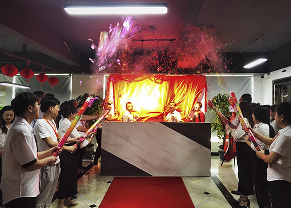 8月29日上午11时18分,专程赶赴芜湖的万乘金融服务集团创始人/CEO/总裁韩晓先生与芜湖万乘总经理计婷、合肥万乘总经理孙宇、集团呼叫业务管理中心总经理张磊一起,在飘飞的礼花中,在员工的欢呼声中,共同为芜湖分公司新职场揭牌。