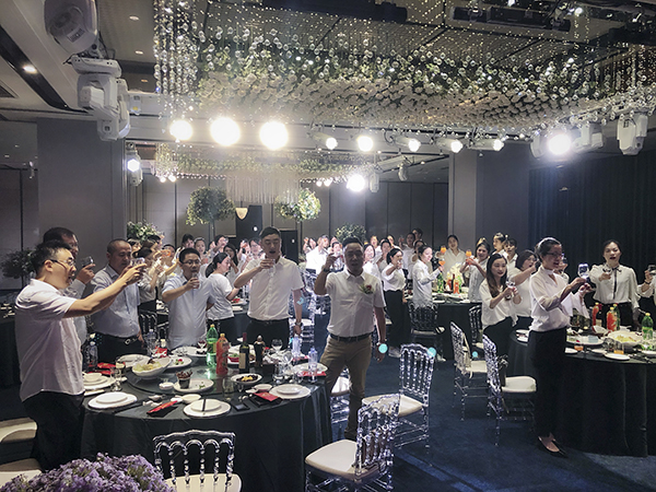 揭牌仪式后,韩总裁在同庆楼大酒楼筵开8席,庆祝芜湖分公司乔迁之喜。宾主共同举杯,祝芜湖万乘乔迁大吉,业绩长虹,财源滚滚。