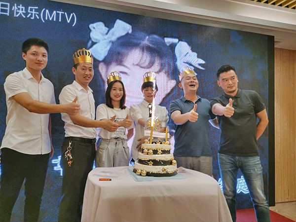 举杯欢庆后,灯光关闭,音乐响起,摇曳着烛光的蛋糕车缓缓推上舞台。由周总、柯总、何总带领优秀管理骨干以及两名优秀员工代表,在全体员工合唱的生日歌中,许愿、吹蜡烛、切蛋糕,把最美好的祝福呈献给温州万乘。