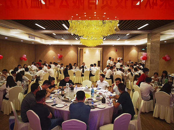 晚上6时许,夜幕降临,华灯初上,灯火辉煌,美酒飘香,温州万乘筵开8席,款待到场嘉宾以及温州万乘全体员工。