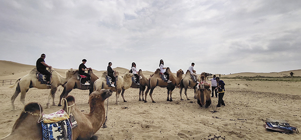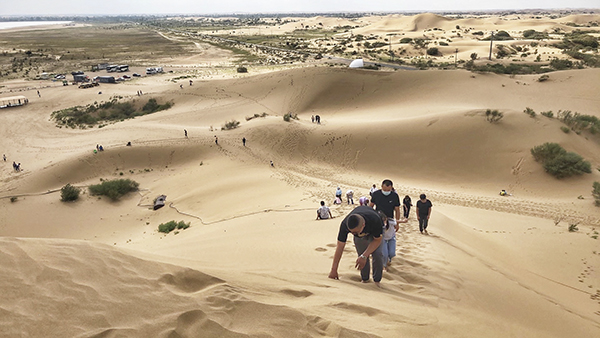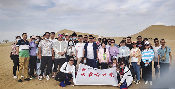 随后我们体验了沙漠骆驼、惊险刺激的水陆两栖车、顺六轮、滑沙等娱乐项目。祭拜了神树敖包,向神树默默许下心愿……沙漠之行即将结束,在广袤无垠的沙漠中留下了我们的不舍,但是也同样心怀期待奔赴下一个目的地——鄂尔多斯万家惠水世界。