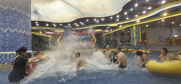万家惠水世界的特色就是将江南的水与西北的沙完美融合。同事们各个都充满精力,融入到欢乐的海洋中,在清莹、激流中洗去一路的风尘和疲惫。