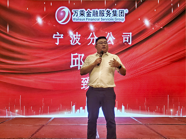 宁波万乘副总经理邱岩代表宁波万乘百名将士郑重表态:成绩已属于过去,荣誉宴后,将翻开新的篇章,全体宁波万乘人将砥砺前行,奋勇拚搏,在年内实现月度佣金200万的目标,使命必达!