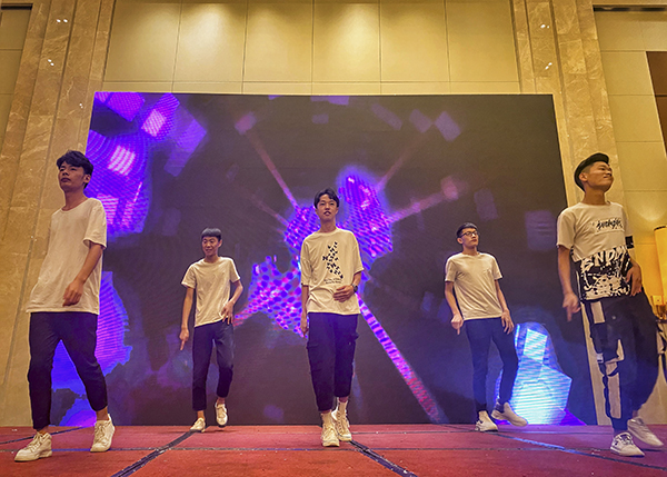 随后,在主持人的引领下,宁波分公司的小伙伴们表了歌舞、小品等精彩节目为晚宴祝兴,韩总裁为获得优秀节目奖和最佳节目奖的员工颁发了奖金。